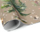 Papier d'emballage de vacances avec écureuils rouges aquarellés dans une forêt boisée enneigée sur papier couleur Kraft.
