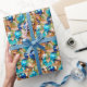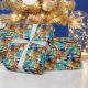 Ce papier d'emballage de texte personnalisé présente un design métallique luxueux et chatoyant, avec un mélange d'éléments festifs. Les ornements de Noël bleus et vifs sont associés à des feuillages d'or et de cuivre, y compris des feuilles d'érable et de houx, créant un contraste riche. Le détail complexe est placé contre un arrière - plan turquoise brillant qui renforce l'élégance générale. Parfait pour élever vos cadeaux de vacances, le design mélange palettes de couleurs modernes avec des motifs de saison classiques, assurant que chaque paquet ressemble à une oeuvre d'art. Le texte peut être remplacé par votre propre texte ou il peut être supprimé.