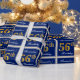 Papier Cadeau Elégant, Bleu, Faux Or 56ème Anniversaire + Nom