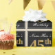 Cette conception simple et élégante de papier d’emballage comporte un message personnalisé tel que "Nom - Voici 45e anniversaire" (avec le "45e" ayant un look de couleur fausse/imitation or) dans une zone carré de couleur noire avec un contour de bordure simple. Le nom est dans un élégant texte blanc de couleur script, et peut être customisé. Un papier comme celui-ci pourrait peut-être être utilisé pour envelopper des cadeaux d'anniversaire pour quelqu'un qui célèbre son quarante-cinquième anniversaire. [~Z0000217]