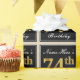 Ce papier d’emballage simple et élégant comporte un message personnalisé comme "74e anniversaire de Name-Here’s" (avec le "74e" ayant un look de couleur fausse/imitation or) dans une zone carré de couleur noire avec un contour de bordure simple. Le nom est dans un élégant texte de couleur blanche en forme de script, et peut être personnalisé. Un papier comme celui-ci pourrait peut-être être utilisé pour envelopper des cadeaux d'anniversaire pour quelqu'un qui célèbre son soixante-quatorzième anniversaire. [~Z0000217]
