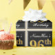 Ce papier d’emballage simple et élégant comporte un message personnalisé comme "NameHere’s 96th Birthday" (avec le "96th" qui a un look de couleur fausse/imitation or) dans une zone carré de couleur noire avec un contour de bordure simple. Le nom est dans un élégant texte de couleur blanche en forme de script, et peut être personnalisé. Un papier comme celui-ci pourrait peut-être être utilisé pour envelopper des cadeaux d'anniversaire pour quelqu'un qui fête son quatre-vingt-seize ans. [~Z0000217]