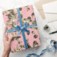 Papier Cadeau Elégant Festif Aquarelle Or Baies Beige Rose