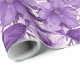 This design features a repeating pattern of flowers and leaves in various shades of purple on a white background. The vibrant color scheme and aesthetic arrangement of the floral elements make this design ideal for a variety of applications, from textiles to stationery, adding a sleek, contemporary touch to any product.
