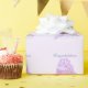 Un joli gâteau mariage violet avec des rubans et des accents de fleurs.