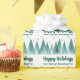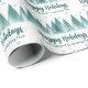 Une élégante rangée de sapins d'hiver et de flocons de neige au-dessus de votre script Happy Holidays personnalisé et de votre nom d'entreprise dans un beau vert turquoise sous la forêt enneigée. Un emballage cadeau de vacances d'entreprise moderne avec votre message personnalisé sur un papier d'emballage d'entreprise joli et festif pour le marketing client.