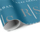 Papier Cadeau Elegant Grey Monogram & White Name, Blue