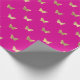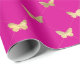 Ce papier d'emballage présente un élégant motif papillon faux or sur arrière - plan rose chaud.