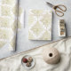 Un beau et élégant papier cadeau motif de fleurs de lotus blanc et or. Parfait pour les vacances ou à tout moment !