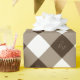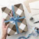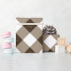 Élégant motif en forme de diamant, avec des formes de diamant brun et blanc et le logo de l'artiste