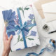 Papier Cadeau Elégant motif floral bleu avec verdure fraîche