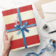 Papier Cadeau Élégant Motif Gold & Red Christmas Stripe