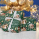 Faites vos cadeaux de vacances extra spécial avec papier d'emballage photo personnalisé. Cet élégant design présente des illustrations de style vintage inspirées de l'opulence de l'époque Art déco. Il comprend des rennes bondissants, des arbres de Noël festifs et des étoiles, jumelés à une typographie rétro élégante. Personnalisez le modèle avec trois photos préférées, le nom du destinataire, ou votre nom de famille. Un design unique qui allie style intemporel et modernité ! Cette enveloppe cadeau motif sans soudure est disponible avec une finition mate ou brillante. Couleurs imprimées : vert foncé, blanc et or.