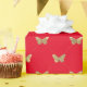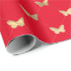 Ce papier d'emballage présente un élégant motif papillon en feuille d'or faux sur arrière - plan rouge.