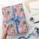 Papier Cadeau Élégant Pink Photo de famille personnalisée Noël