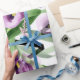 Custom abstract floral engagement, wedding or bridal shower wrapping paper with purple and green calla flowers. Add your own text with easy to use Zazzle editing tool! Modern design in neutral colours.