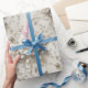 Papier Cadeau Elégant Rose ivoire avec design floral argent