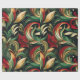 Papier Cadeau Élégant Rouge, Vert & Or Abstrait Feuilles de marg