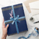 Papier Cadeau Élégant Script Monogram Dark Navy Blue Grey & Gold