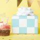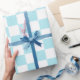 Motif carré bleu et blanc. Roulettes de papier d'emballage cadeau personnalisées.