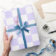 Motif carré violet et blanc. Roulettes de papier d'emballage cadeau personnalisées.