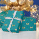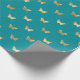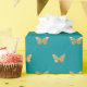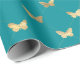 Ce papier d'emballage présente un élégant motif papillon en feuille d'or faux sur arrière - plan turquoise.