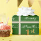 Papier Cadeau Elégant, Vert, Faux Or 1er Anniversaire + Nom