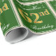 Papier Cadeau Élégant, Vert, Faux Or 62ème anniversaire + Nom