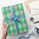 Ce papier d'emballage élégant et mignon présente un motif de Jacquard mignon avec des diamants violets et verts et des lignes pointillées vert citron. Parfait pour les anniversaires et la Saint Patrick.
