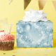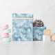 Elégant papier d'emballage de Noël avec beau ornement de Noël bleu glace, lumières brillantes blanches et tinsel brillant.