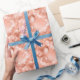 Elégant papier d'emballage de Noël avec beau motif de décoration de Noël, lumières brillantes blanches et tinsel brillant dans la couleur corail.