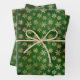 Papier Cadeau Élégante feuille d'or vert flocons de neige motif