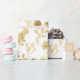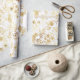 Papier Cadeau Élégantes Fleurs d'or Blanc Botanique