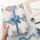 Papier d'emballage personnalisé avec nom Éléphant Bébé Fille Rose et Gris avec pois blancs