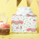 Ce joli dessin de Noël d'éléphant blanc présente un éléphant d'aquarelle portant un chapeau de Père Noël, équilibrant les cadeaux sur son tronc. Texte "Eléphant blanc" en blanc sur une bannière rouge ruban. L'arrière - plan est un saint motif coordinateur.