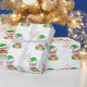 Joli elfe de Noël et flocons de neige sur papier d'emballage blanc.