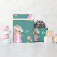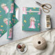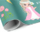 Papier Cadeau Elfe fée mignonne et fleurs sur Turquoise