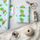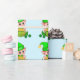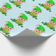 Papier Cadeau Elfe vert mignon avec une casserole d'or sur bleu
