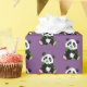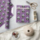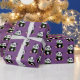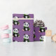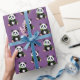 Papier d'emballage cadeau montré dans une couleur pourpre d'arrière - plan avec une copie mignonne d'ours panda.