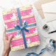 Baby shower mignon enveloppant le papier de cadeau, comportant un caractère blanc courant mignon de canard. Papier d'emballage fait sur commande de douche rose et jaune de bébé. Personnalisez avec vos noms de baby shower et posséder le message. Lit actuellement des félicitations de baby shower sur votre bébé. Une grande manière de customiser vos bébés versant des cadeaux. Uniquement conçu par Sarah Trett.