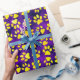 Papier Cadeau Empreintes de pattes jaunes sur violet - Papier à