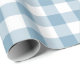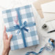 Papier d'emballage blanc et bleu clair en vichy motif à grande échelle. Approprié pour décorer les cadeaux pour différentes occasions.