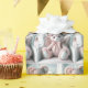 Un ours en peluche et un motif en vichy rose et blanc se trouve sur une chaise blanche et élégante, ornée d'un arc et de petites fleurs à l'oreille