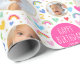 Célébrez la magie de tourner deux avec ce papier d'emballage mignon et coloré! Un modèle amusant, avec l'expression "Joyeux anniversaire" dans des lettres de script tendance, et personnalisée avec la photo et le nom de votre enfant. Des arcs-en-ciel colorés, des coeurs, des étoiles et l'âge d'anniversaire tout important sont répétés dans tout le motif. Parfait pour célébrer les 1er, 2e, 3e, 4e ou 5e premières années des enfants, et un ajout délicieux à votre enveloppement cadeau! Couleurs imprimées : couleurs vives et pastel, rose, rouge, jaune, vert, bleu et blanc. Magasinez la collection en ligne pour des idées de produits plus populaires pour les fêtes d'anniversaire pour enfants!