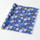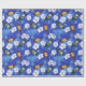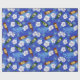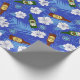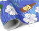 Papier cadeau bleu vif imprimé de bouteilles de bière sur fond de fleurs tropicales blanches et palmiers. Le papier d'emballage idéal pour les enterrements de vie de garçon et les mariages sur la plage et autres célébrations qui impliquent de boire de la bière