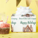 Ce papier d'emballage de Noël personnalisé pour agent immobilier comprend le nom de votre agence immobilière et un message de joyeuses fêtes dans une typographie verte chic ainsi qu'une belle image d'une maison en hiver entourée de pins. Papier cadeau de Noël professionnel pour la promotion des entreprises immobilières.