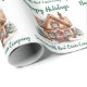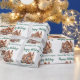 Ce papier d'emballage de Noël personnalisé pour agent immobilier a le nom de votre agence immobilière personnalisée et un message de Joyeuses Fêtes dans une typographie verte chic ainsi qu'une belle image d'une maison en hiver entourée de pins. Papier cadeau de Noël professionnel pour la promotion de l'entreprise de biens immobiliers.