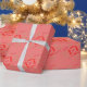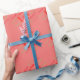 Enveloppement cadeau de vacances design, design d'art moderne et élégant en vert, rouge et corail. Le texte peut être personnalisé avec votre propre salutation de vacances. Le texte est également amovible.