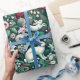 Un jardin à feuillage persistant de Noël aux fleurs et aux guirlandes, le lièvre blanc et les motifs d'hiver colorés inspirés du mouvement Art Nouveau.