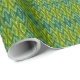 Motif dans les tons verts. Le chevron motif tissé est installé dans un motif kaléidoscopique qui ressemble à des écailles de reptile. Les tons vert et bleu.